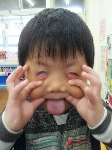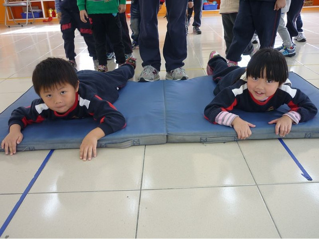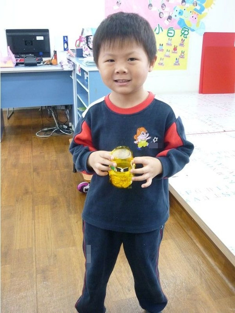 體能課的體適能測驗,爆表小子果然不是叫假的,立定跳遠中班男生平均是90cm,這小子一躍竟然跳了130cm之遠@@ 仰臥起坐、折返跑等也難不倒他