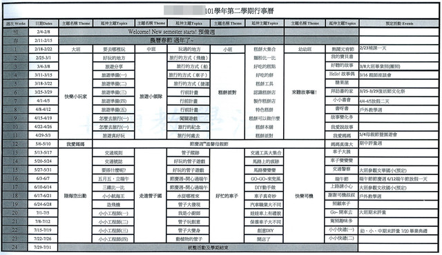 2月份就是中班下學期的開始,有新的行事曆~ 這學期兩個主題分別是旅遊小領隊及走進管子國