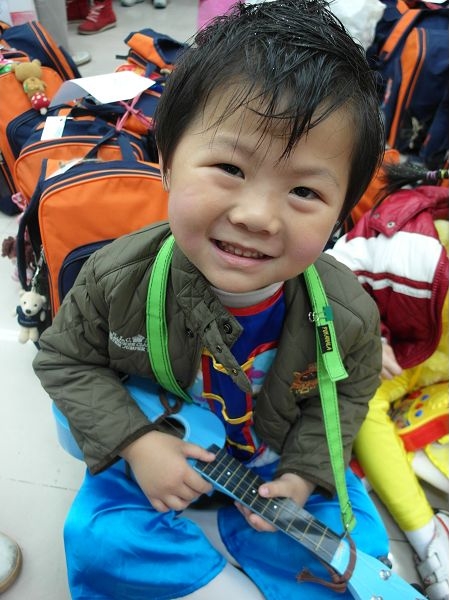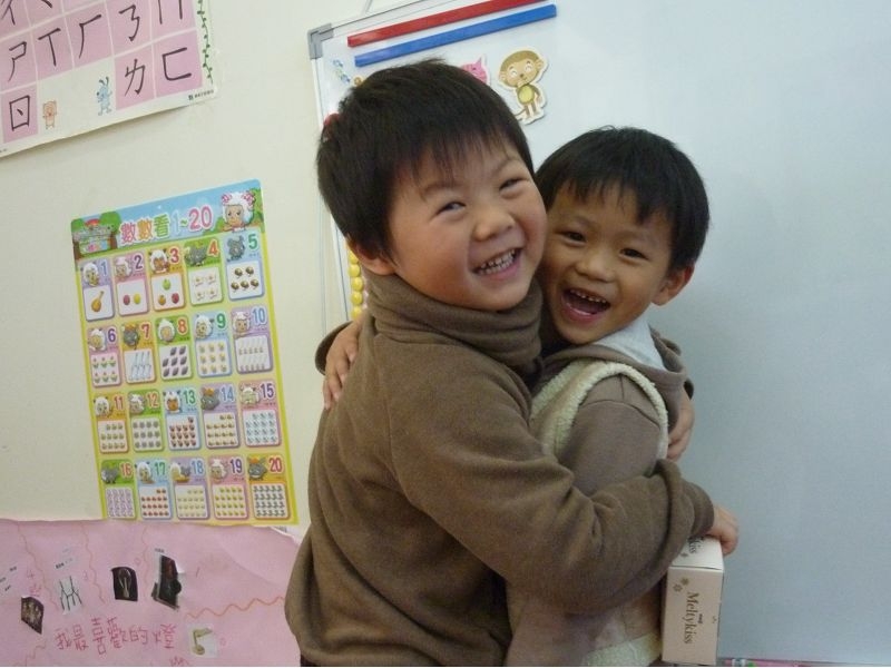你看看~都是小女生圍上前擁抱,臭男生被擠到一旁,只有我家兒子出奇不意從後面摟住,好樣的!!