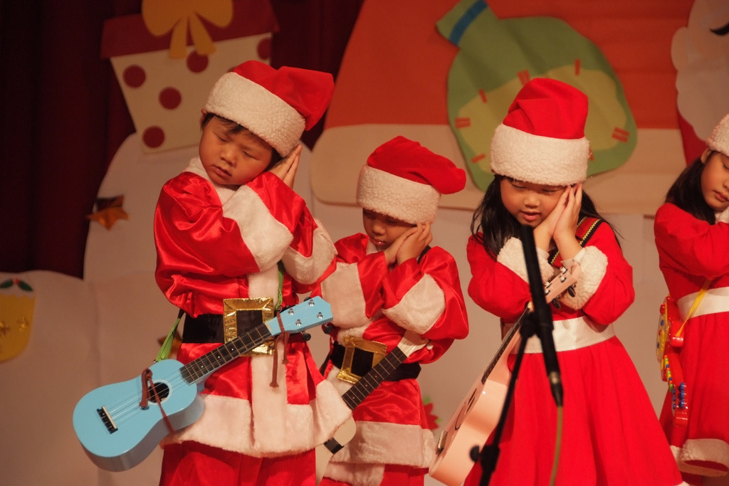 12月是幼稚園忙碌的一個月份,因為有小朋友們最喜歡的聖誕節相關活動!!每年的聖誕晚會都給家長帶來很多的驚喜,今年勳有兩個表演節目,一個是合班演出的”歡樂聖誕”,除了耳熟能詳的中英文聖誕歌曲,大家有聽過台語版、廣東版甚至印度版的嗎?