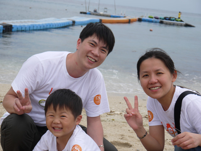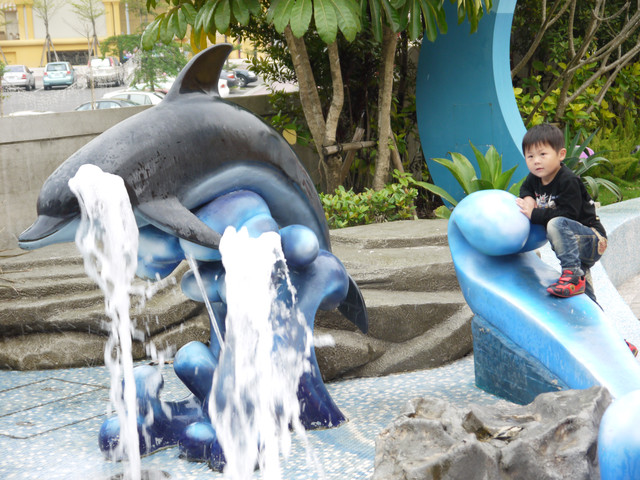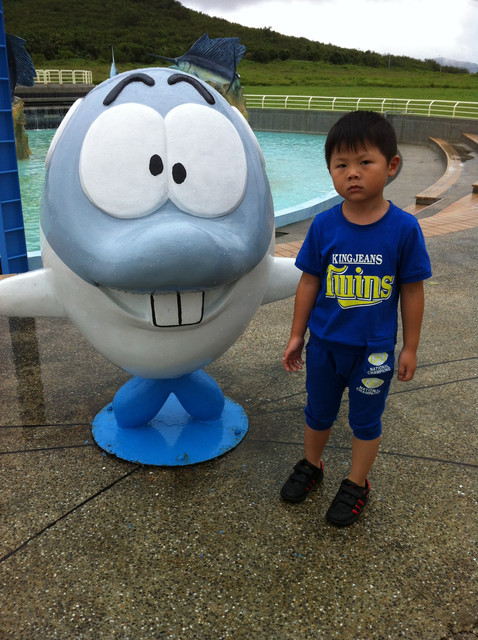 第一天下午還間歇性下大雨,那就先到海生館逛逛吧!!臭小子很想衝去玩水,被我抓來拍照臉臭臭~