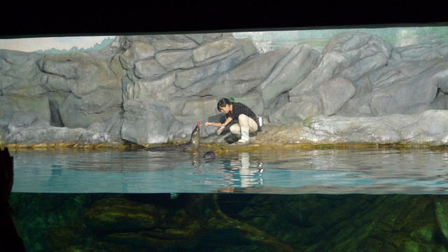 參觀過幾次企鵝館,這裡的種類跟數量最多,小勳在沖繩跟海豚賽跑,在這裡也要跟企鵝比一下