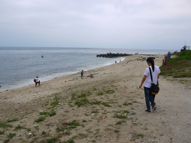 白沙灣,也就是海角七號友子跟阿嘉相擁的地方,好奇的問,白沙灣的沙子為什麼不是白色的???(移動式人工陽傘又出現了)