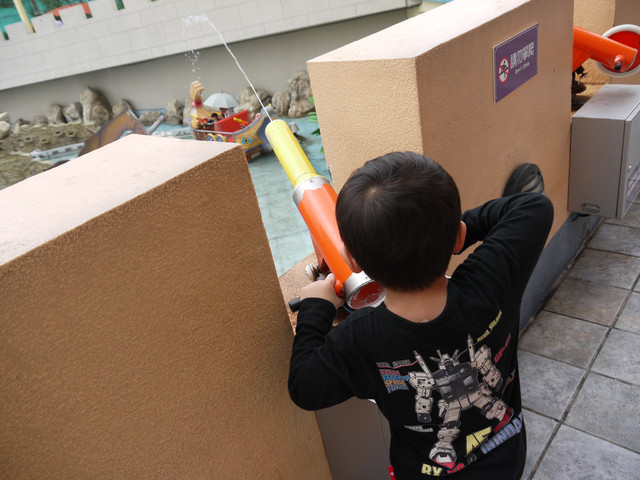 一進樂園我們就直接殺到最裡面的特洛伊城, 特洛伊城重現木馬屠城記歷史場景,是全台最大親子室內遊樂館,即便下雨也不用擔心啦~裡頭幾乎所有的設施小勳都玩過一遍,但因為爸爸媽媽跑去挑戰刺激的設施(最刺激的天旋地轉和極限挑戰),所以把小鬼留給外婆陪玩,所以照片不多...