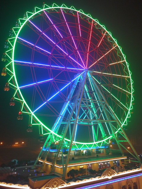 晚上我們住在義大皇冠飯店,全台最高的義大摩天輪就在房間正對面,看著摩天輪燈光變化真是幸福!!