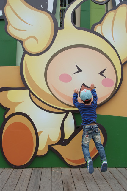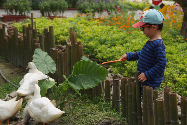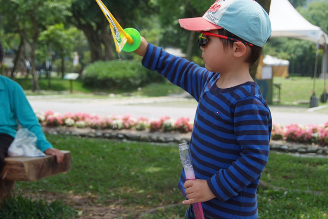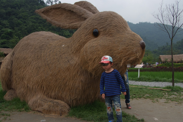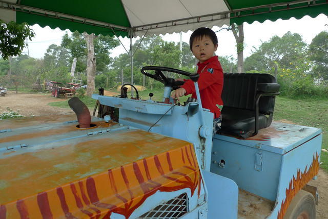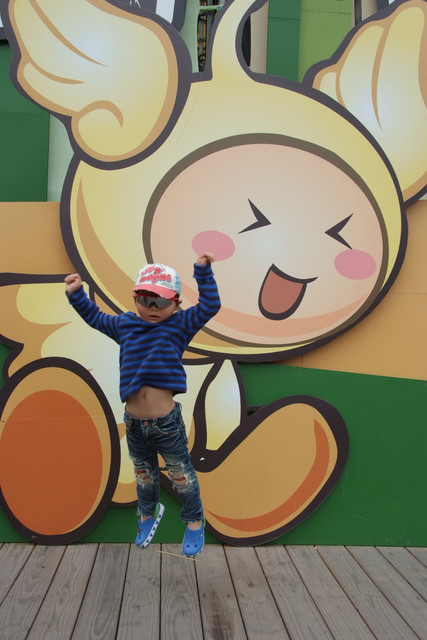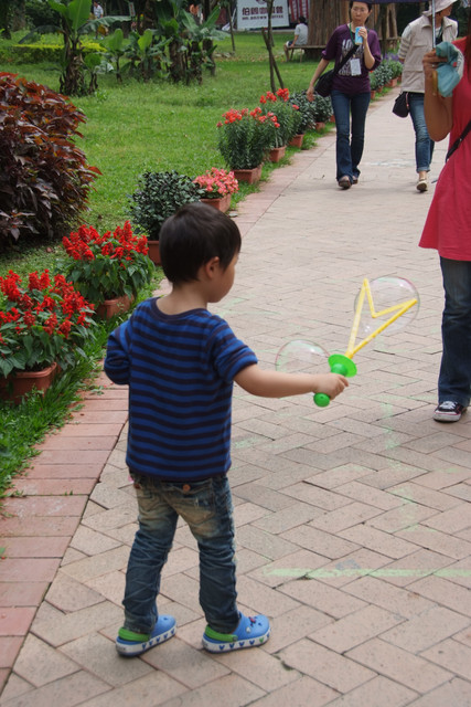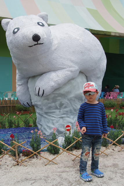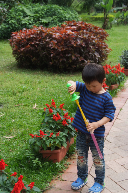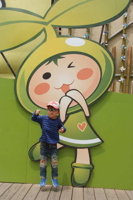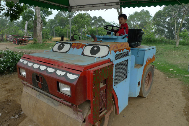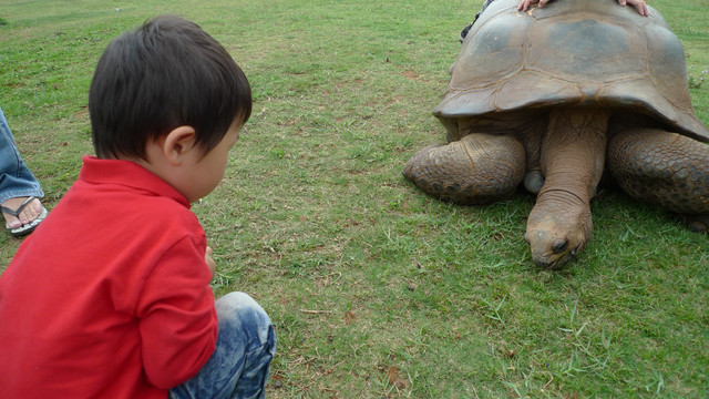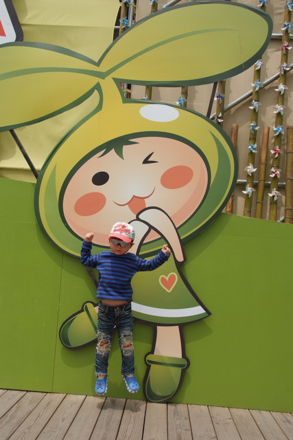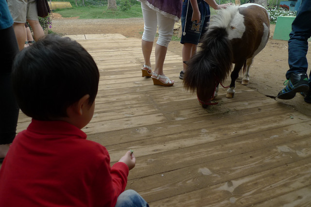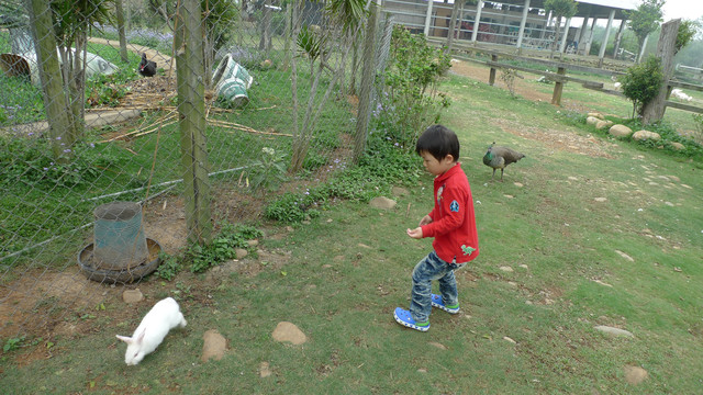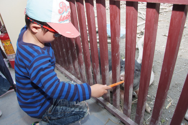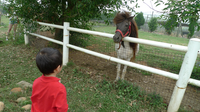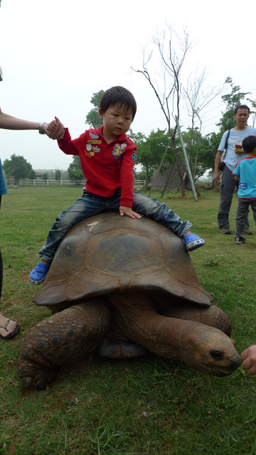 到天馬牧場就是要親近動物嘛,不然就去一般動物園就好啦,在我們鼓勵下小勳終於敢摸摸小白兔、騎象龜,但也僅此而已(有發現他騎象龜還是要牽著人嗎?)