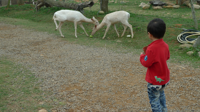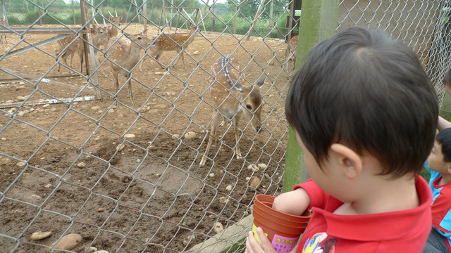 小時候外公幫小勳撿的助膽石太小顆,不要看小勳個頭大,膽子可小了,看到動物只敢遠遠餵食,動物靠近一點可嚇得哇哇叫(其實老母我也是:p)