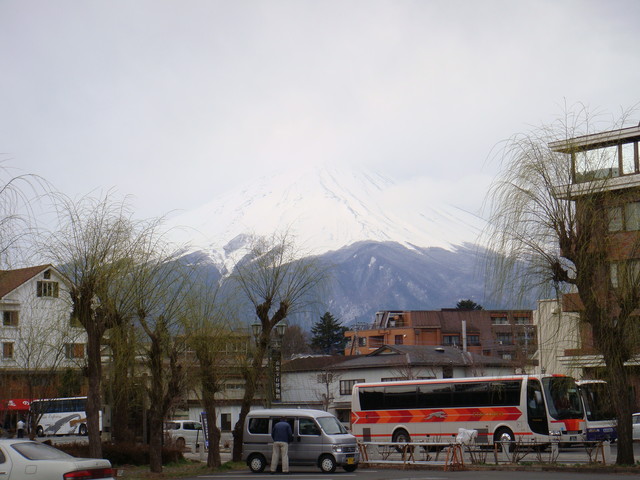 前一天霧氣很重霧濛濛一片看不到富士山,今天一早很幸運的天氣放晴,離開河口湖後就看到富士山了(勳麻的傻瓜相機拍得不是很清楚)